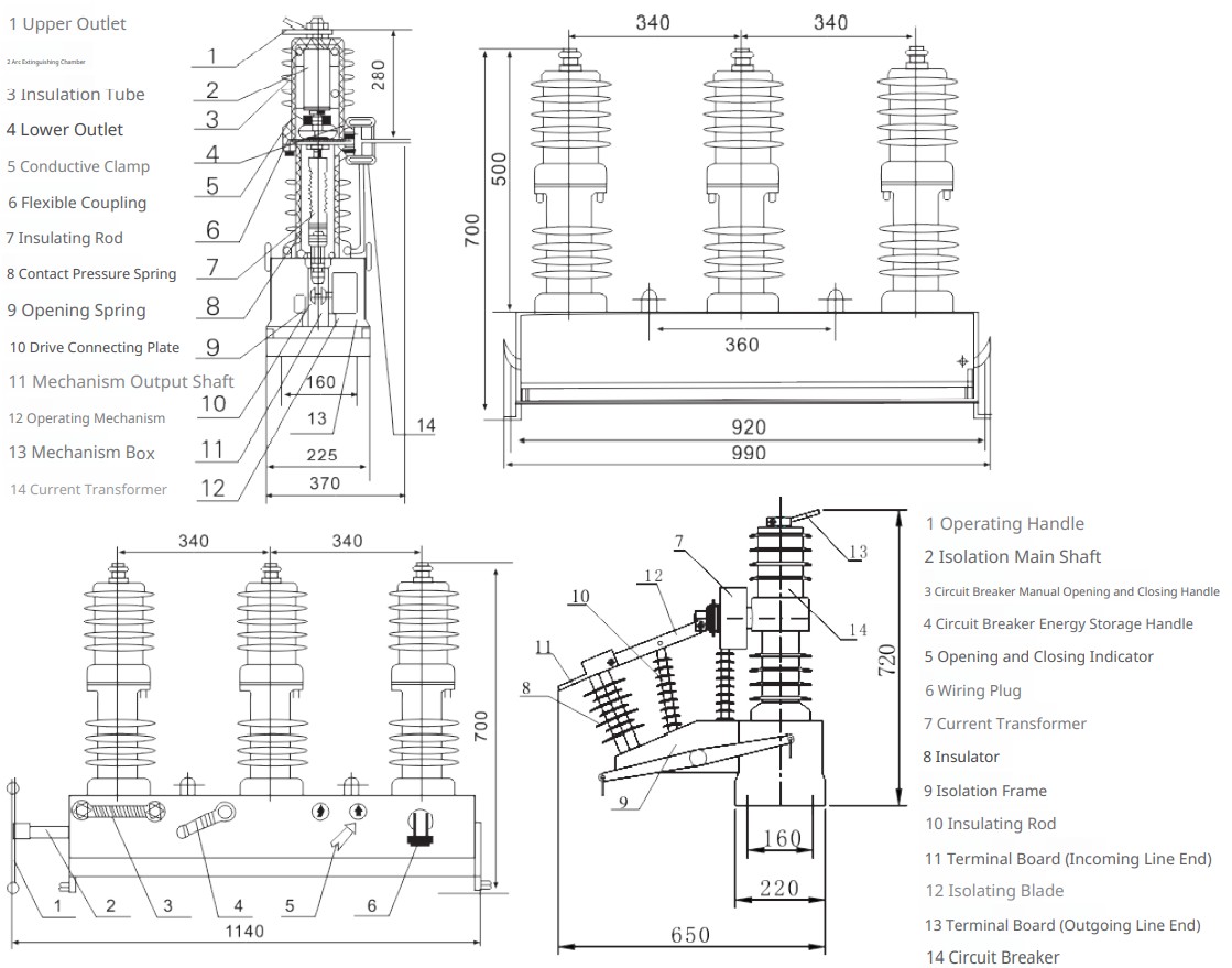 -ইলেক্ট্রোমেকানিকাল দ্বৈত স্থায়িত্ব: বিশেষভাবে উচ্চ-ফ্রিকোয়েন্সি ব্যবহার এবং দীর্ঘমেয়াদী পরিষেবার জন্য ডিজাইন করা হয়েছে। ZW32 সিরিজ আউটডোর ভ্যাকুয়াম সার্কিট ব্রেকার বারবার সুইচিং এবং ভোল্টেজ ওঠানামা প্রতিরোধী, এবং আমার যান্ত্রিক গঠন শক্তিশালী, এবং আমার বৈদ্যুতিক কর্মক্ষমতা সবসময় অনলাইন থাকে।